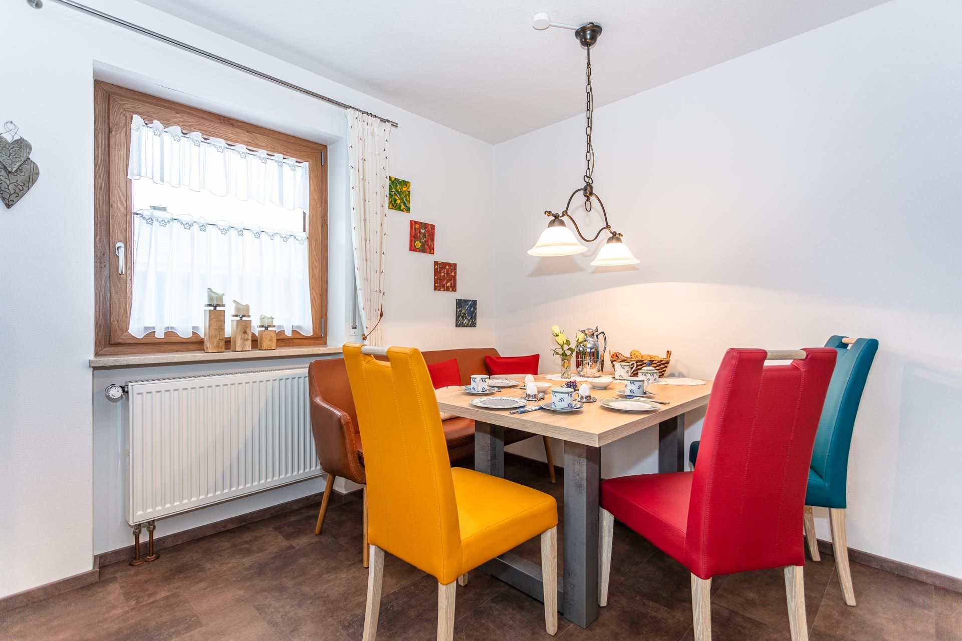 Mit sehr hochwertigen Einrichtungsgegenständen ausgestattet, bietet die Ferienwohnung Gabi Urlaub auf höchstem Niveau. Mit einer Wohnfläche von 80 m² bietet die Unterkunft Platz für maximal 4 Personen. Direkt bei der Ferienunterkunft können Feriengäste kostenlos parken. Sollten Sie mit Ihrem Motorrad ankommen oder Sie haben Ihre eigenen Fahrräder dabei, dann haben Sie bei uns die Möglichkeit, unsere abschließbare Garage zu nutzen. Sie erhalten bei Ankunft in der Ferienwohnung Gabi in Piding die Gastkarte Piding kostenlos, mit der Sie viele Vorteile genießen können. Den nach Süden ausgerichteten Balkon erreichen Sie über das Wohnzimmer. Der Balkon ist mit einer Liege, Sitzecke und einer Markise ausgestattet.